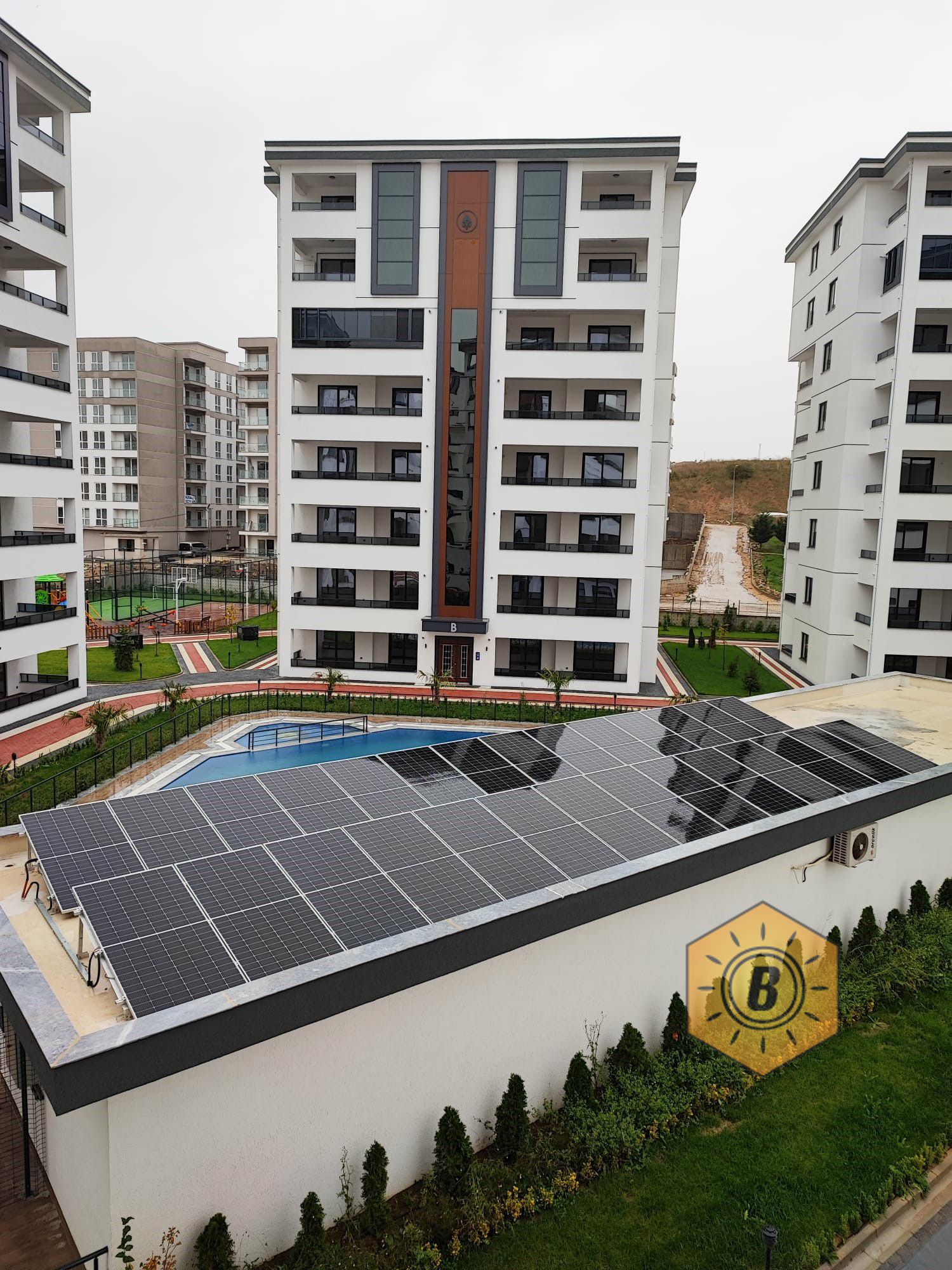 - Üretilen Güç; sitenin Ortak alan ( Havuz, Aydınlatma vs) tüketimi için kullanılıyor.